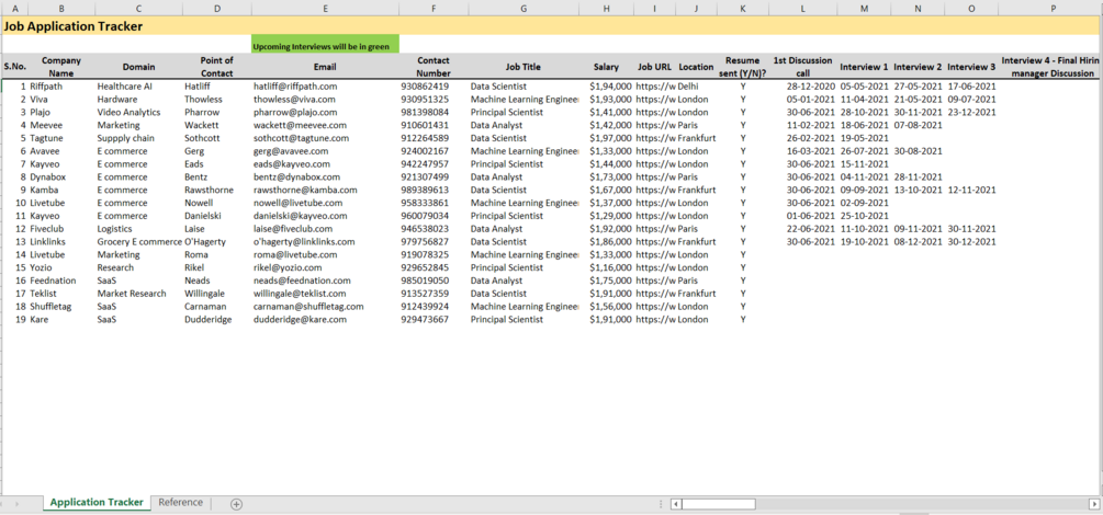 Easy to use Excel spreadsheet to track all your job applications at a single place.